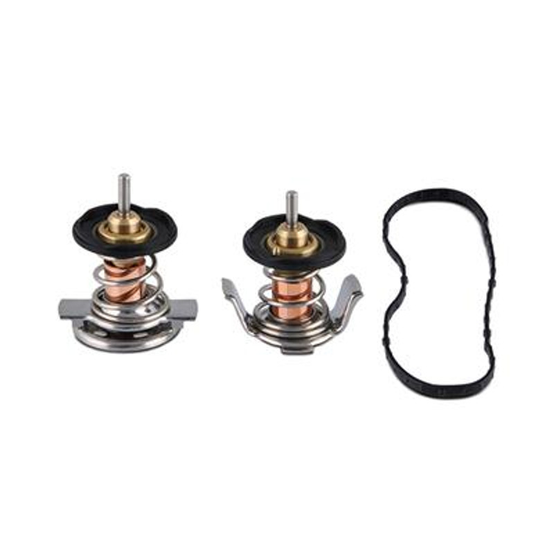 These thermostats are designed as a direct-fit replacement for your aged factory units. The Mishimoto thermostats have a lower activation temperature (187°F/197°F) compared to the factory thermostats (192°F/203°F). The lower activation temperatures allow coolant to flow through the engine earlier, which reduces and maintains lower engine temperatures. These thermostats are ideal for use in warmer climates or under extreme towing/driving conditions.
